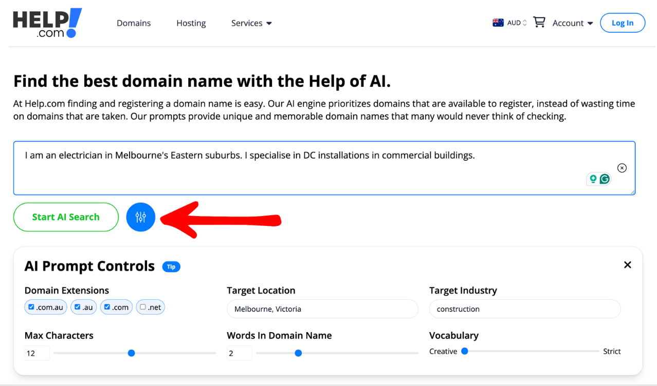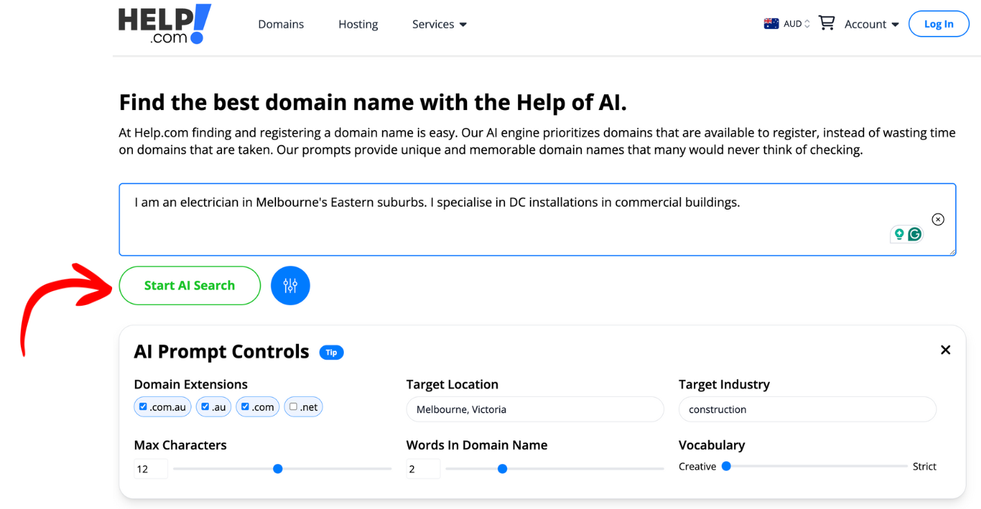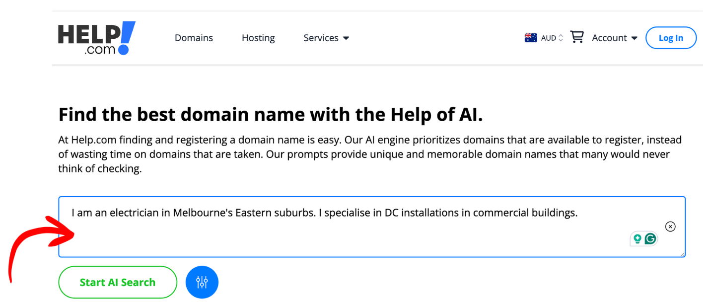 Step 1: How to Use Help.com’s AI Search Tool to Find a Memorable Domain Name?