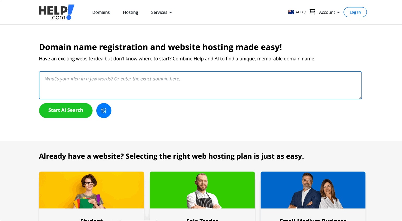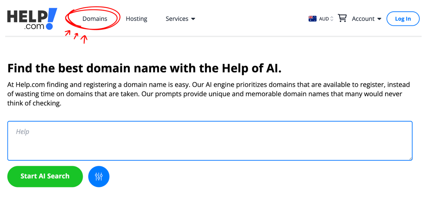Visit help.com/domains. This is where you’ll begin your search for the perfect domain name.