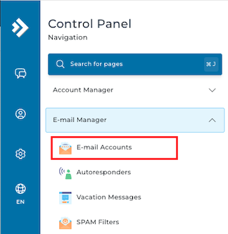 To reset an email account password navigate to your DirectAdmin Control Panel then click on your “Email Manager” > “E-Mail Accounts” From there tick the box adjacent to the email that you require the password to be reset for.